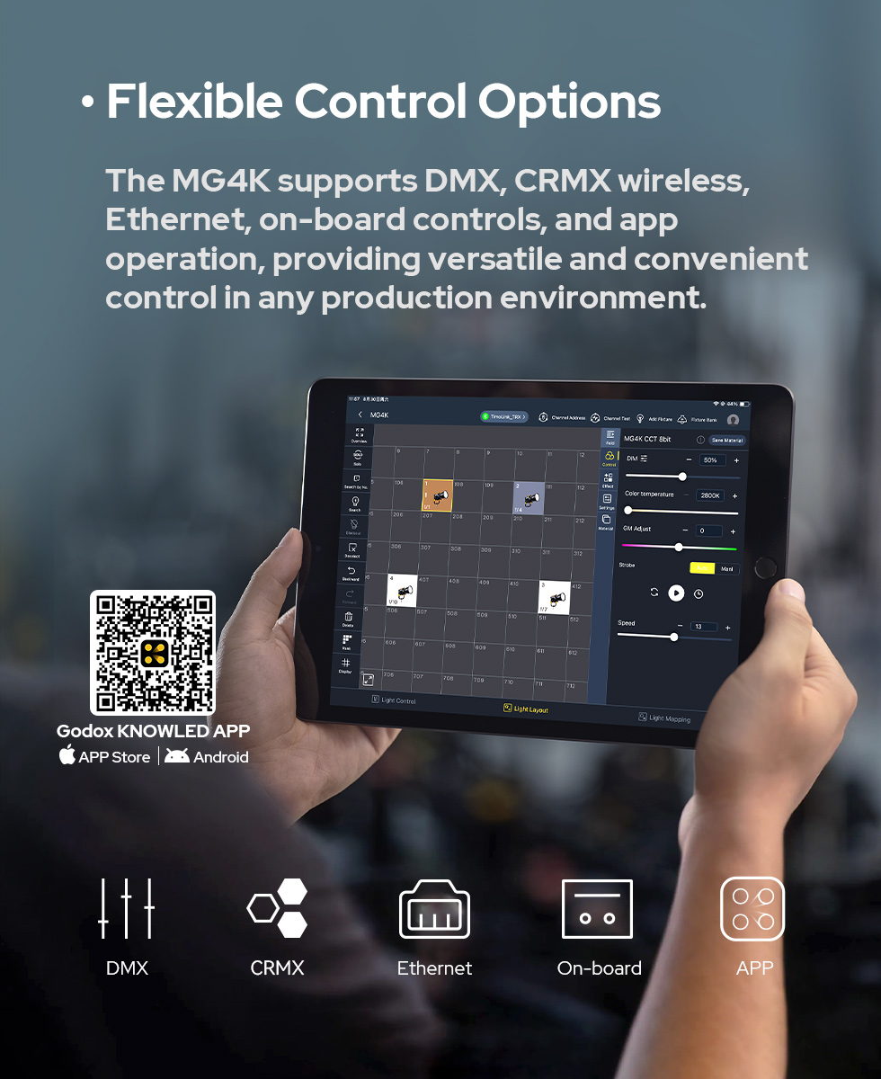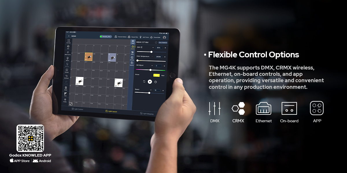 | Controlling Methods | Wireless or wired DMX/RDM, CRMX, Ethernet, Bluetooth, controller control |